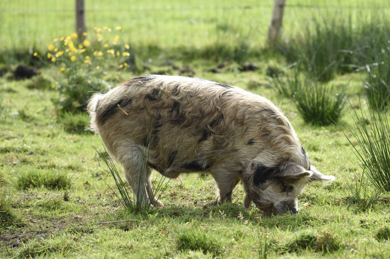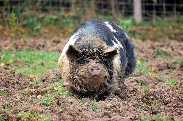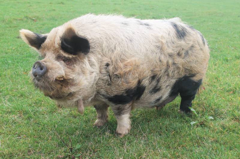 De kunekune is bedekt met haar dat lang of kort kan zijn, en recht of gekruld,